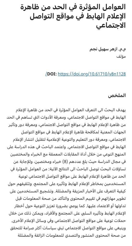 المقالة استخدمت كمصدر في دراسة منشورة في مجلة كلية الامام الكاظم