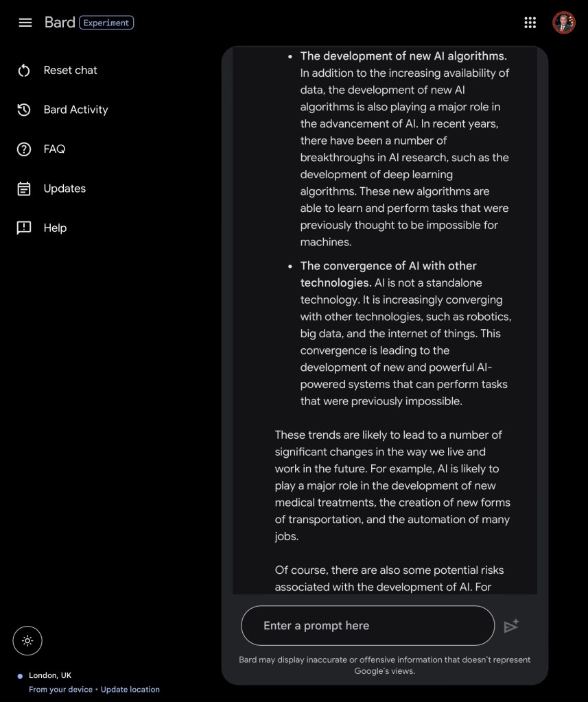And Brad AI’s answer was: Sure, here’s an article on the future of AI: